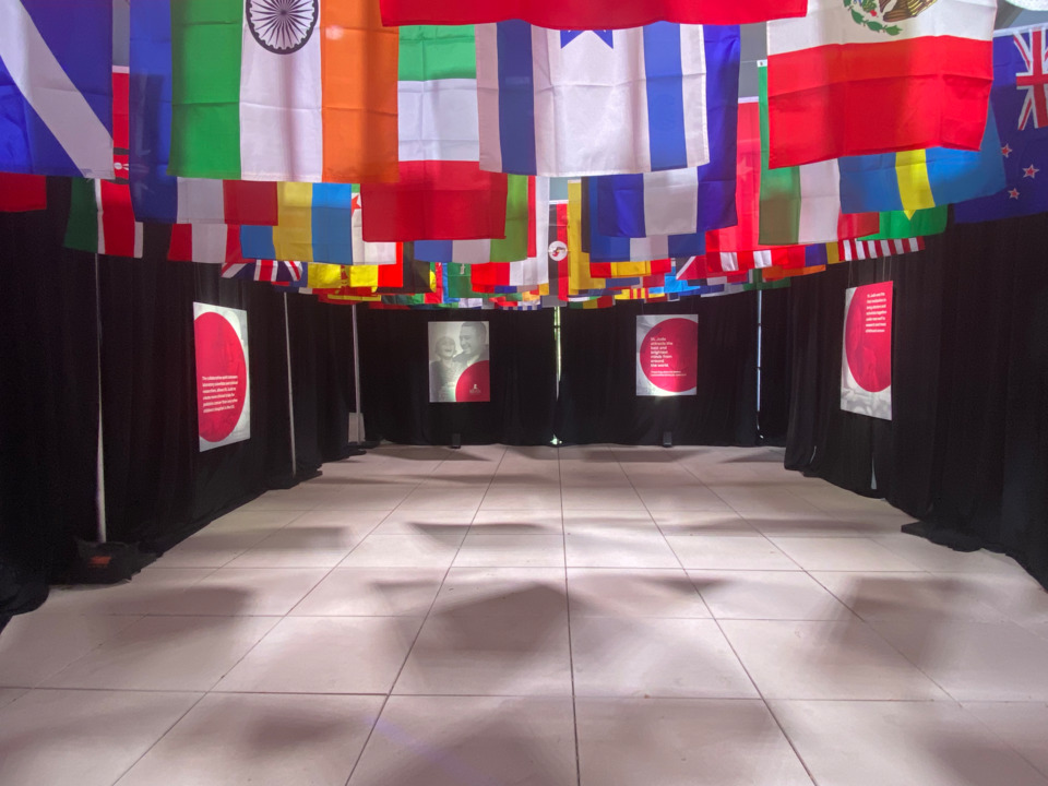 Guests then arrived at the heart of the “Journey,” a lengthy 100 foot x 10 foot timeline wall visually telling the history of St. Jude using a giant banner, with boards suspended from outriggers to create dimension and call out key moments.