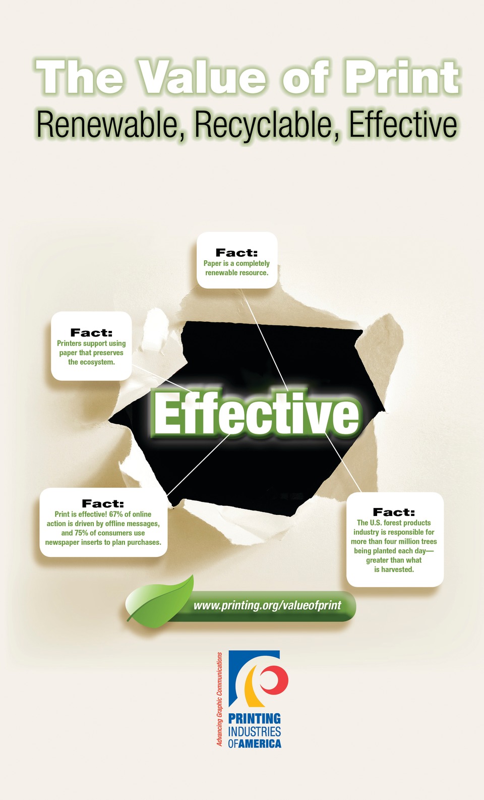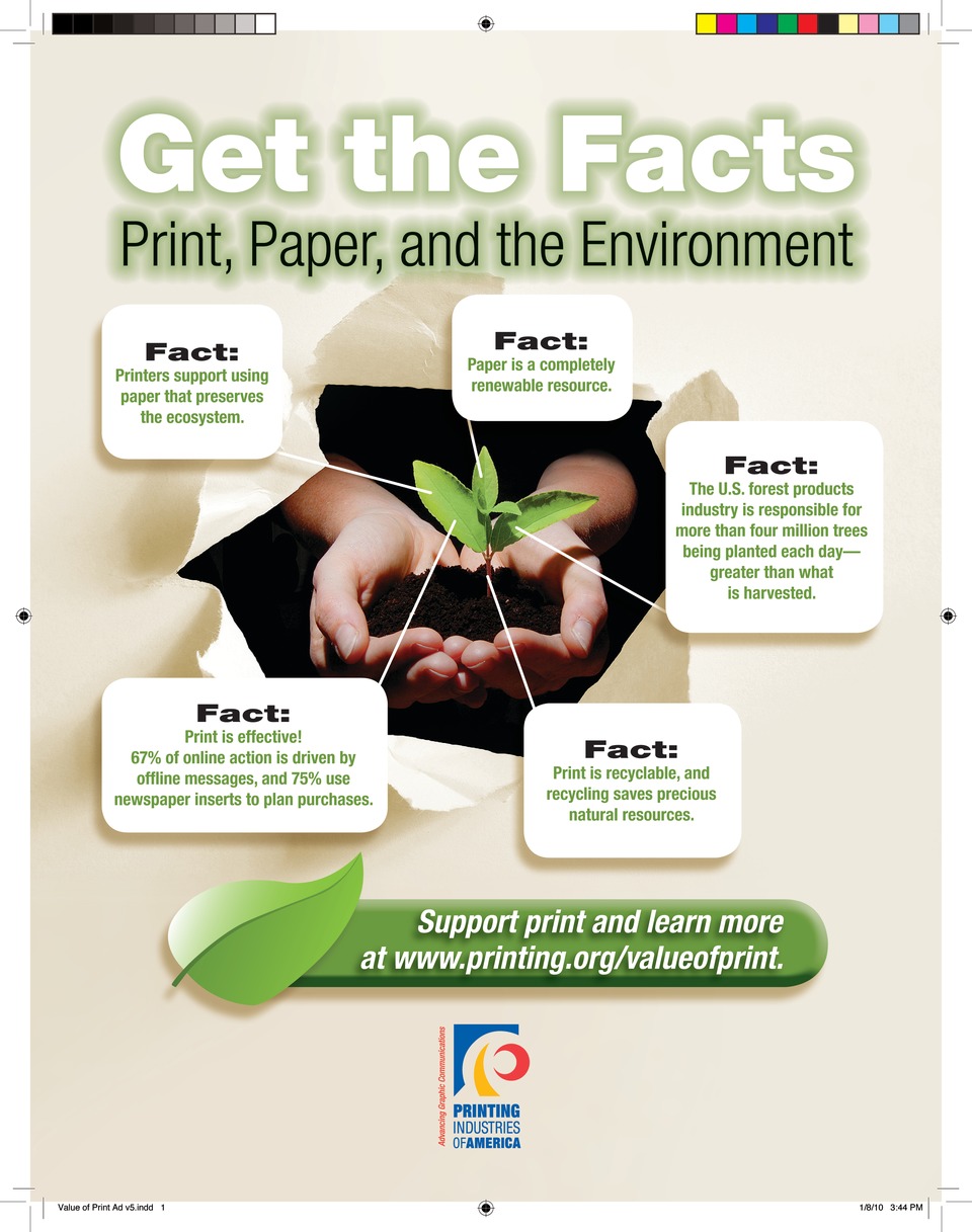 It has never been more essential to convey the message that print is important to brand recognition, as well as the sales process. It is also vital to communicate that we are both an environmentally and socially responsible industry. At Printing Industries of America, we strive to equip printers with valuable information that helps them communicate the value of print. Give your customers the facts—print is effective and an environmentally responsible industry.