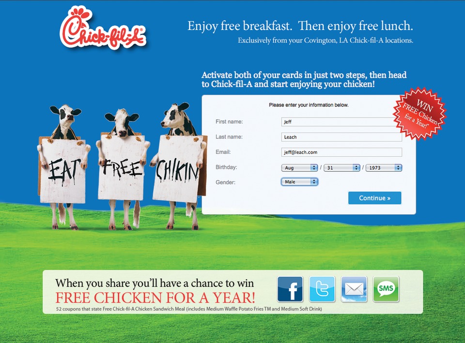 Its Ultimate Father’s Day Giveaway offered the chance to win a new grill and a collection of other tools and gifts for dad. Stine’s marketing strategy included television commercials, radio, in-store advertisements, direct mail, email, and local blog communications. All respondents were driven to Stine’s Dukky promotion as the portal to capture customer data, engage with new and current customers by asking three simple questions, and incentivizing participants to share the offer with friends via email and more than 340 social networks. Results doubled over expected results with direct marketing alone, as the Dukky online promotion received more than 28,000 visitors from all media channels, with almost half of all traffic entering the campaign’s landing page through links shared on social media networks. Facebook and Twitter were the most effective sharing outlets, with share-to-response ratios of 1:4 and 1:10, respectively.