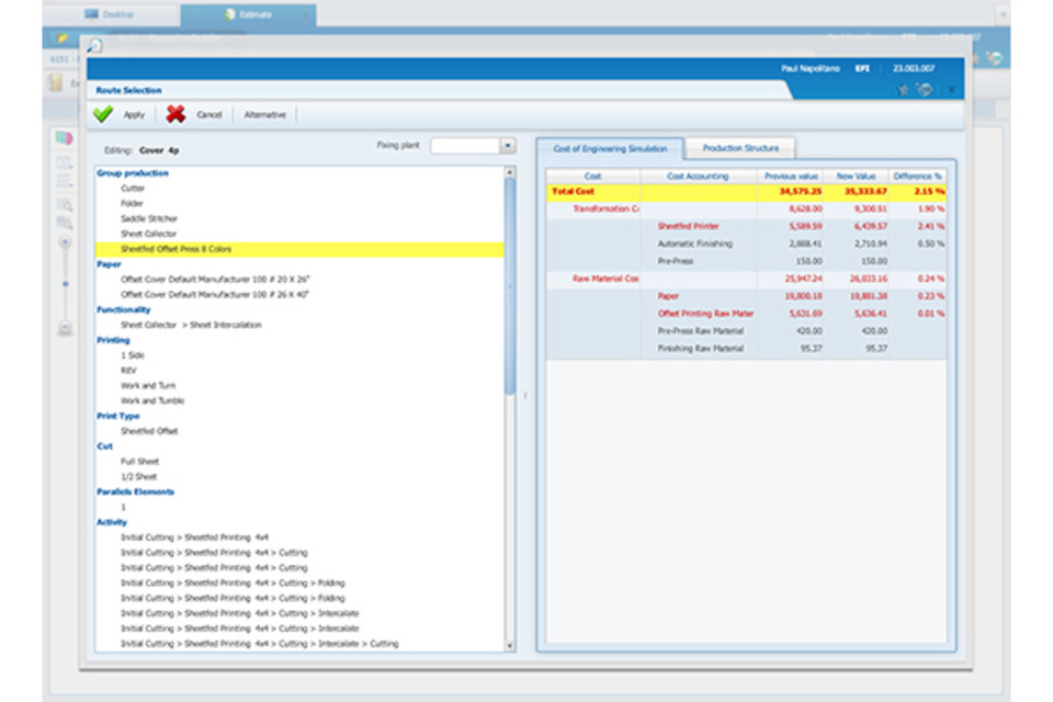 “The system tells you, based on every piece of equipment you’ve got in your shop, the most effective way of calculating that,” said Benkovich, “You don’t need to know how that magic happens.” And the system does this by determining—also based on all the capabilities the shop has—what the best way of producing that job will be.