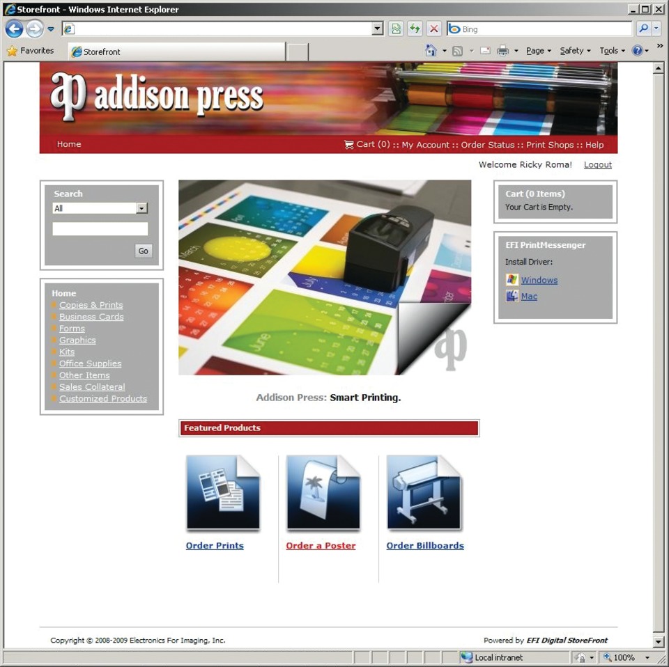 EFI (Booth 2000) is showcasing the combined power of Digital StoreFront and EFI Pace into a single, seamless workflow. EFI Digital StoreFront (DSF) is a world class, print-centric e-commerce solution. EFI Pace is a browser based, scalable and customizable print management system. Now integrated into one workflow, DSF and Pace enable print providers to create an end-to-end acquisition and management solution focused on revenue creation and optimization.