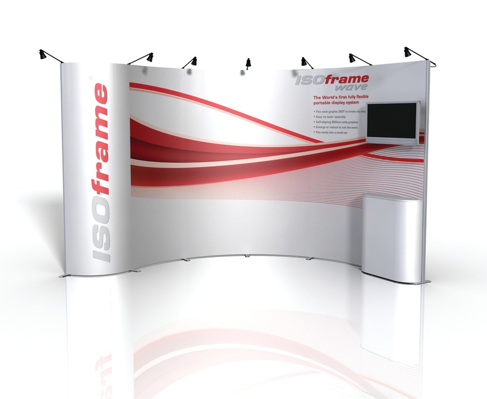 Mark Bric Display’s ISOframe Wave is the world's first fully flexible portable display and is sure to get your attention and the attention of your customers or prospects. Flex the entire exhibit wall into the shape you need. Extend or reduce the length as desired. It can be flexed 180° at every point due to the patented Flexi-wave link. It also features easy, no tool assembly, with simple breakdown and compact transportation.