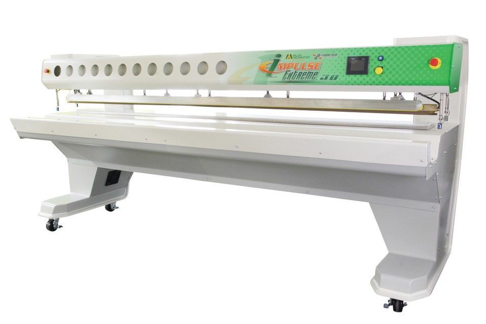 Specifically designed for the sign and digital textile markets, the Miller Weldmaster Impulse Extreme 3.0 has been enhanced with a fully automatic folding function and sleek open design. The new fully automatic folding function increases productivity by eliminating operator set up time prior to welding. The folding bar creates the precise fold for a perfect weld every time.