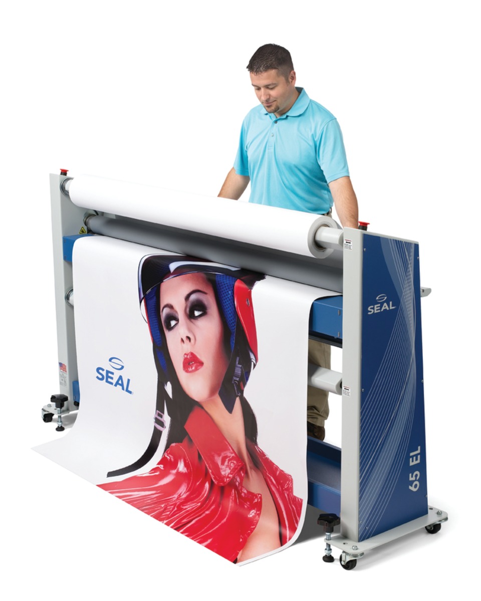 The SEAL 65 EL is a high quality, affordably priced wide format cold roll laminator designed for new users to confidently create professionally finished graphics. Its durable uniframe construction requires no assembly and minimal maintenance. With simplified controls and easy material loading, featuring our unique auto-grip rollers, and flip-up in-feed table for fast webbing, it provides the means to efficiently finish inkjet prints. Built for ease of use, it is ideal for mounting and laminating pressure sensitive graphics up to 65 inches wide.