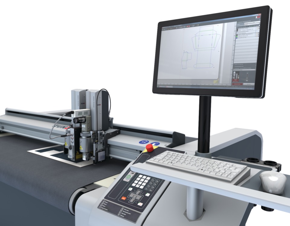 The MultiCam Digital Express uses digital registration with routing and knife cutting on a sheet-fed cutting platform to register, route, and knife-cut at high speeds for digital finishing. The MultiCam Digital Express is fully capable of three-dimensional cutting. The three axes on a MultiCam Digital Express are capable of moving simultaneously, which allows for 3D cutting.