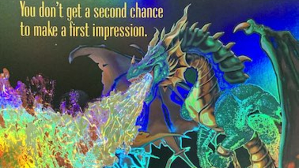 Hazen Paper Company has created an innovative, two-sided promotion to demonstrate cutting-edge holographic technologies. Hazen’s team designed the artwork on both sides to showcase specific visual effects with nano holography that delivers an even more dramatic three-dimensional effect than lenticular printing. The front features a fire-breathing dragon with minutely detailed glittering scales. The effect of a blast of moving flames was achieved with registered, custom color-motion and multi-channel holography. On the back, a shimless random repeat custom hologram, “random burst,” creates a moving, three-dimensional flash backdrop for a flock of butterflies.