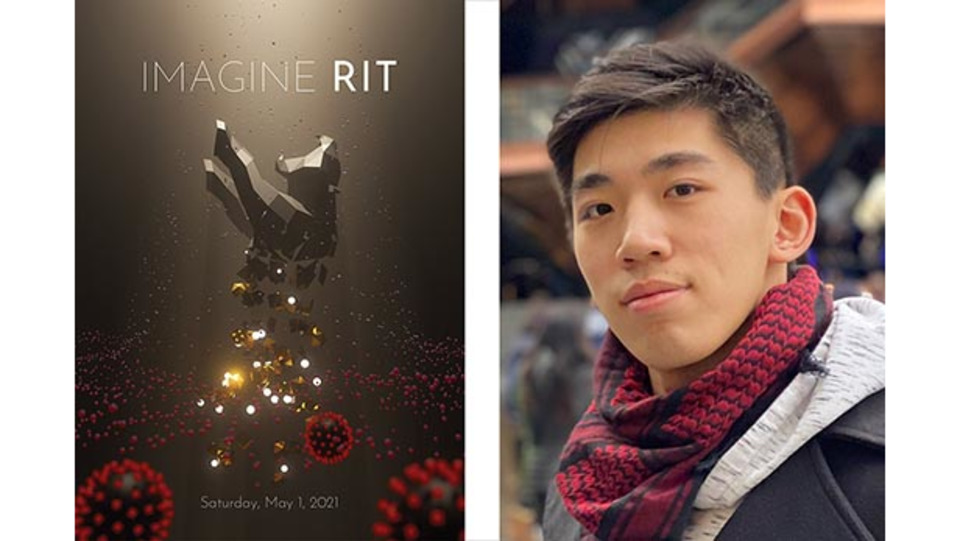 The poster for the 2021 Imagine RIT: Creativity and Innovation Festival was designed by Luke Chen, a second-year new media major from Fuzhou, China. The festival will be held virtually this year, on May 1.